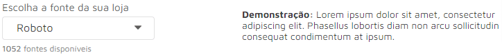 Você pode trocar a fonte da sua loja para qualquer fonte disponível. São mais de 1050 opções de fontes que você pode usar livremente. Todas as fontes são fontes do google, portanto você pode usar o site deles como referência, ou a própria área de demonstração que fica ao lado. Na caixa de escolha da fonte, também é possível buscar pelo nome da fonte.