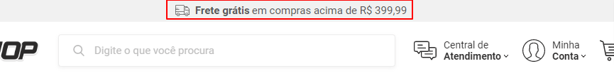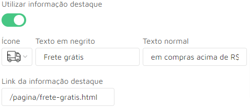 Você pode adicionar uma informação para ficar em destaque no topo da sua loja.