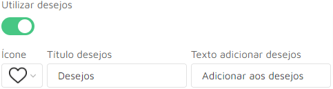 Também é possível alterar o ícone e nome dos desejos de forma geral na loja. Pode ser muito útil a depender do seu segmento. Você pode trocar para “lista” ou “favoritos”, por exemplo.